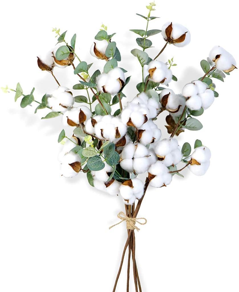 1 dalda 5 pamuk çiçeği ve okaliptus dalı mevcut.