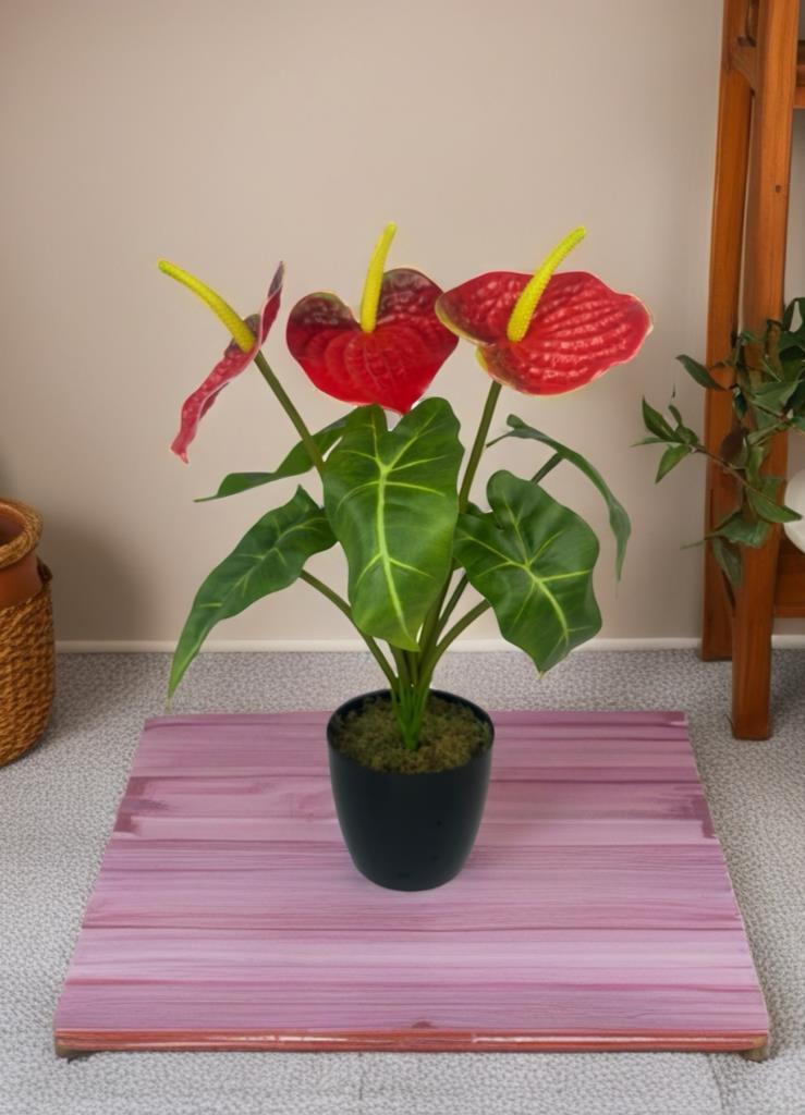 Yapay Çiçek Antoryum – Siyah Saksılı Kırmızı Salon Çiçeği