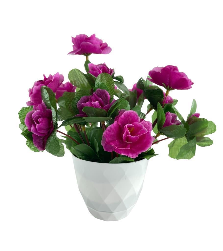 Yapay Çiçek Beyaz Saksıda Mor Açelya Dekoratif Masa Çiçeği (63491)
