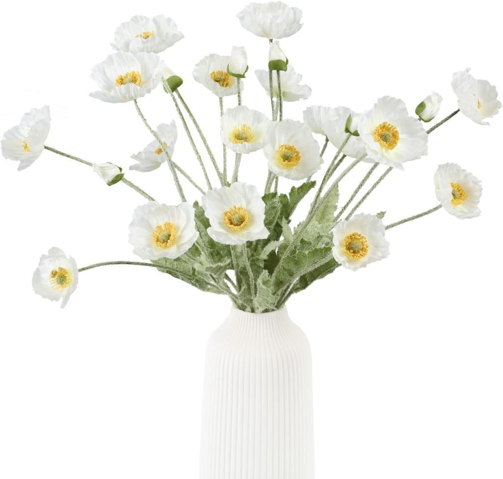 Yapay Gelincik Çiçeği – Beyaz | 3 Çiçek + 1 Tomurcuk | 59 cmSaf ve zarif görünümüyle dikkat çeken beyaz yapay gelincik çiçeği, 3 adet tam açmış çiçeği ve 1 adet tomurcuğuyla gerçekçi bir doğallık sunar. İnce işçilikle üretilmiş yaprak ve gövde detayları sayesinde, hem tekli hem de aranjmanlarda şık bir tamamlayıcıdır.