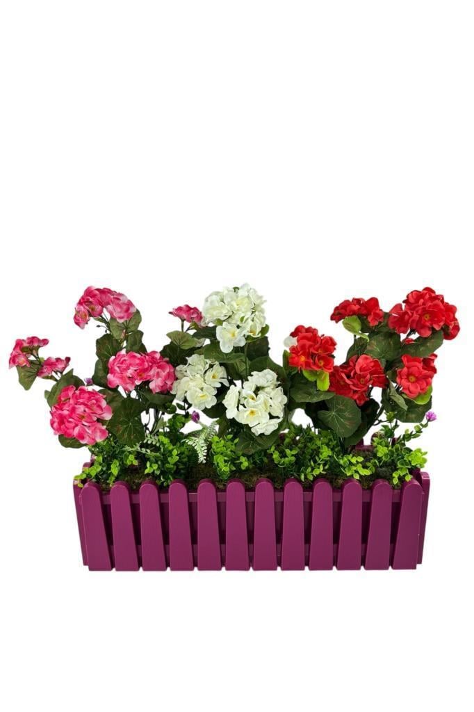 Yapay Çiçek Sardunya Çiçekleri Mor Çit Saksıda Küpeşte Askılı Balkon Çiçeği Çiçek Sepeti