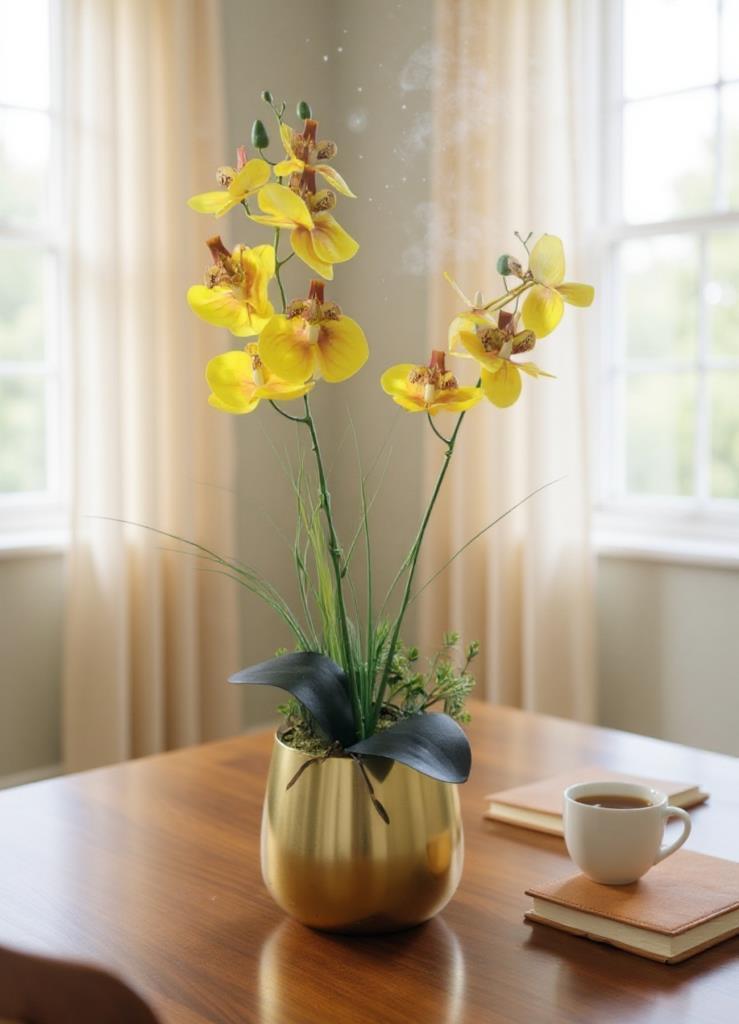 Yapay Çiçek Sarı Islak Orkide Gold Metal Saksıda Saksıda Orkide 50cm (537288570)