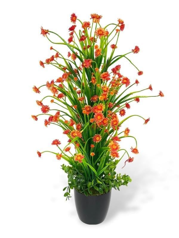 Yapay Çiçek Siyah Saksıda Turuncu Papatya Ağacı 55cm (13115202)