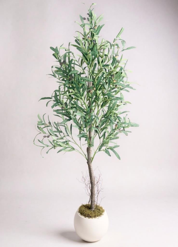 Yapay Zeytin Ağacı – 160 cm, , Beyaz Küre SaksıdaAkdeniz’in huzurunu ve estetik dokusunu evinize taşıyan 160 cm boyundaki yapay zeytin ağacı, doğal ağaç gövdesi tasarımı sayesinde daha doğal ve gerçekçi bir görünüm sunar. Beyaz küre saksısı ile modern dekorasyon tarzlarına mükemmel uyum sağlar. Gerçekçi yaprak ve zeytin detaylarıyla canlı ağacı aratmayan bu özel tasarım, bakım gerektirmeden her daim yeşil ve estetik bir görünüm kazandırır.